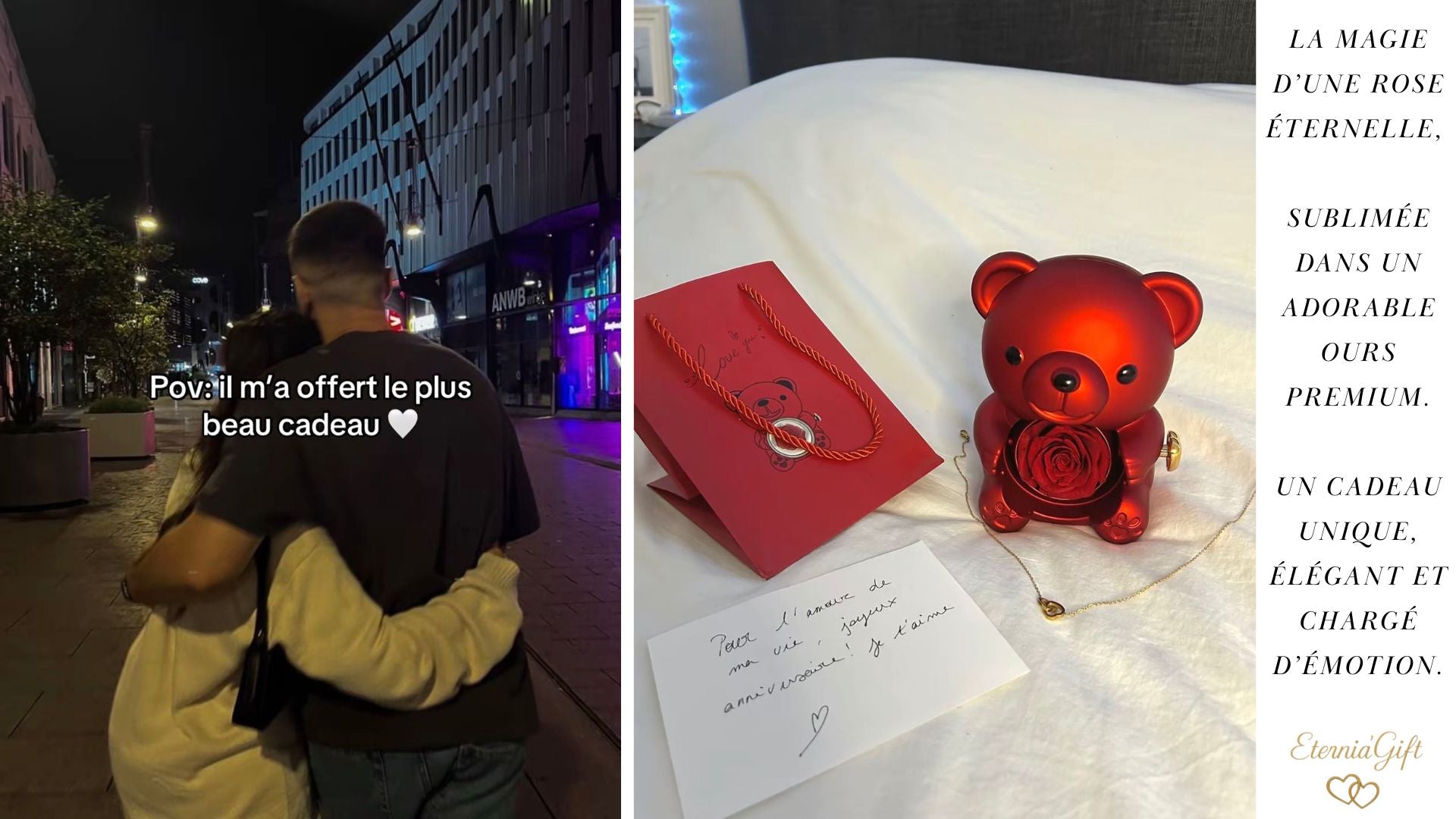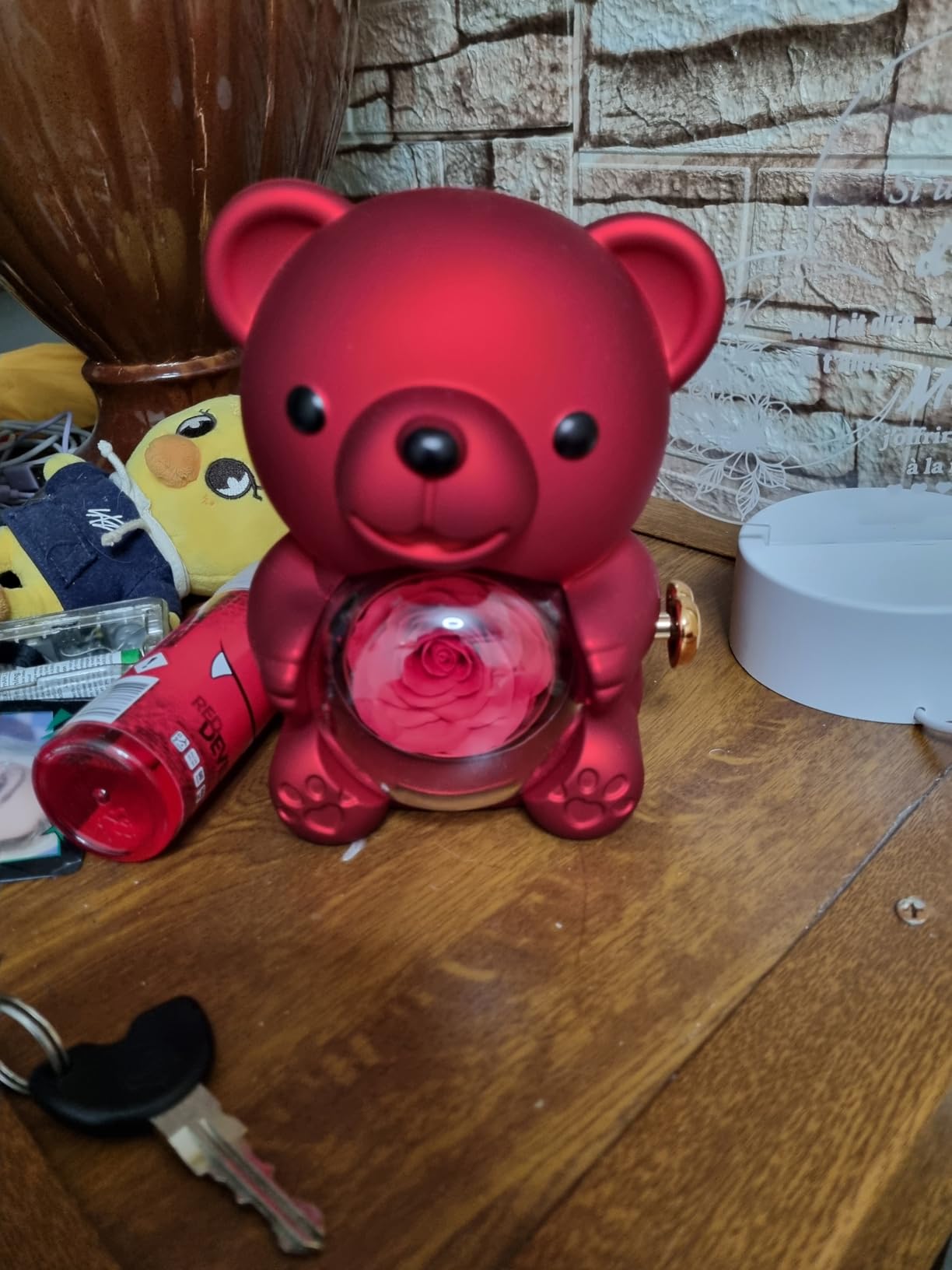 Ce petit ours rouge éternel est juste… adorable ! ❤️🧸 Il est très mignon, trop beau, et la couleur rouge est magnifique — un vrai coup de cœur visuel dès l’ouverture de la boîte ✨🎁. À l’intérieur, on découvre un vrai bijou, et pas un gadget ! 💍✨ Il est classe, solide, il tient bien et il est parfaitement présenté. Franchement, je crois que c’est mon coup de cœur de l’année ❤️ ! L’ours est une super idée cadeau pour la Saint-Valentin, mais aussi pour Noël, un anniversaire, ou juste pour dire je t’aime à quelqu’un qu’on aime fort 🎄❤️🌟. Et ce que j’adore : on peut réutiliser l’ours pour y cacher un autre bijou ou un petit mot doux par la suite… c’est poétique, malin et romantique à la fois ✨📝🎀. Je recommande à 100 %, c’est un cadeau aussi symbolique que mignon, parfait pour faire plaisir tout en beauté ! ⭐️⭐️⭐️⭐️⭐️ Petit + : Le bijou à l’intérieur est vraiment de qualité et le concept de cachette rend le tout encore plus magique ! 💝🧸💎