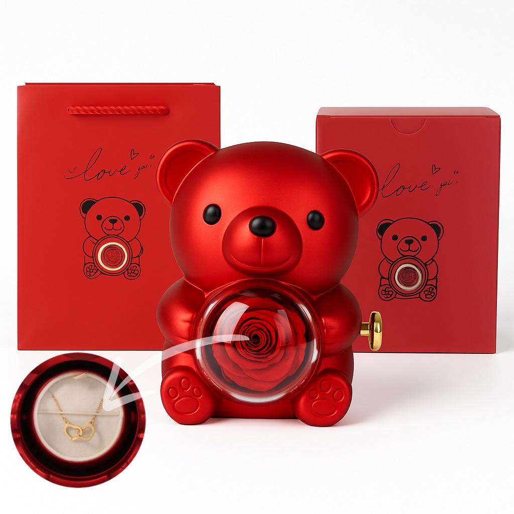 Ours rose éternel avec bijoux cachés dedans 🧸🌹💍